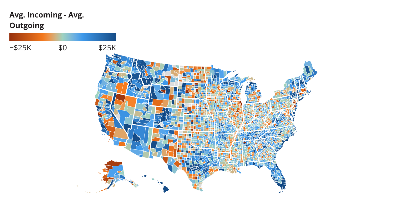 The figures come from a new analysis of tax data by the nonpartisan Economic Innovation Group, which studied how migration during the pandemic era changed the economic realities of places people moved to—and from.